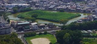 台地の南端に位置しているため、濠の南側には大規模な堤が築かれています。