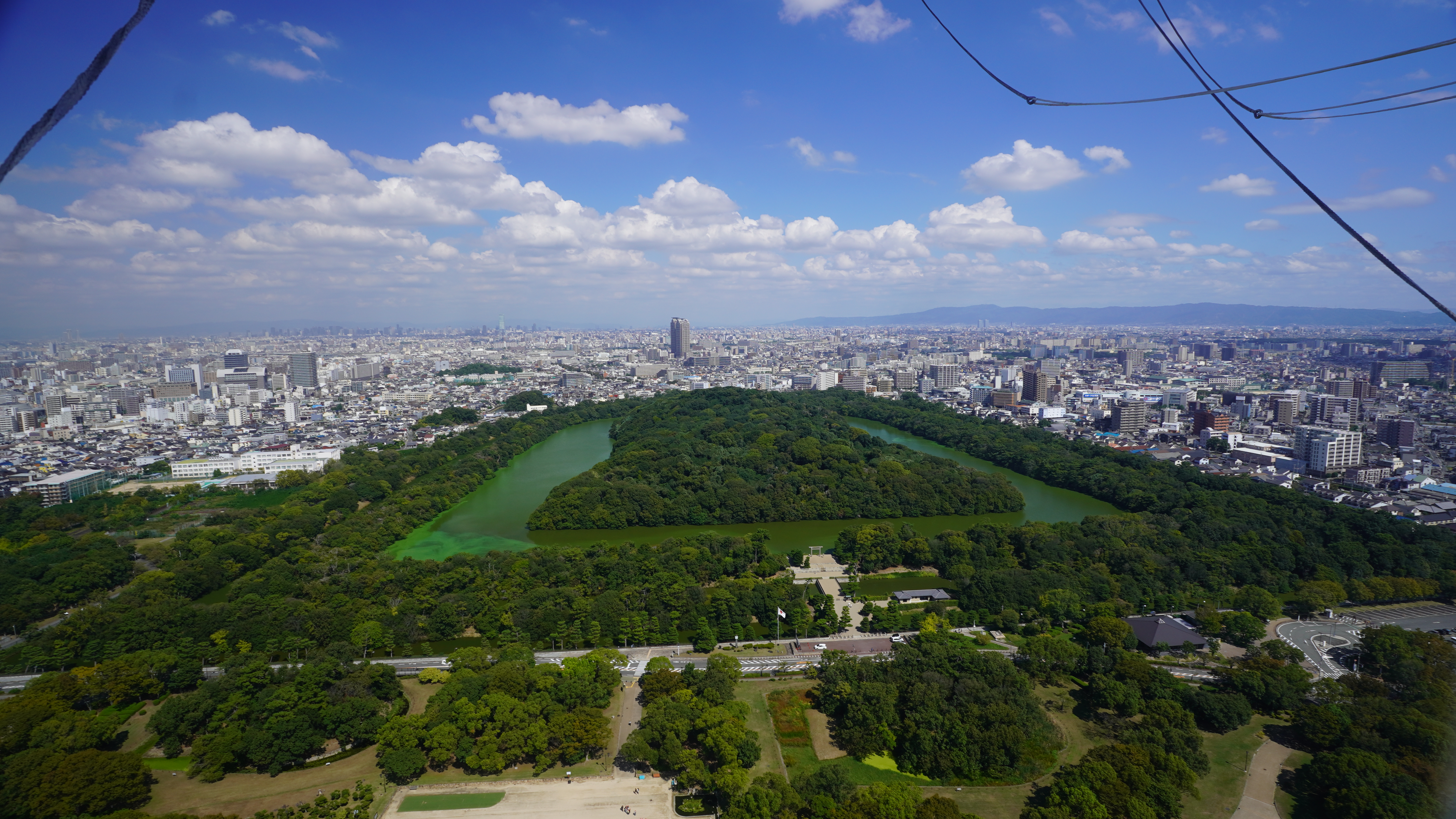 堺市の大仙公園内での気球で、100m上空からの古墳の旅