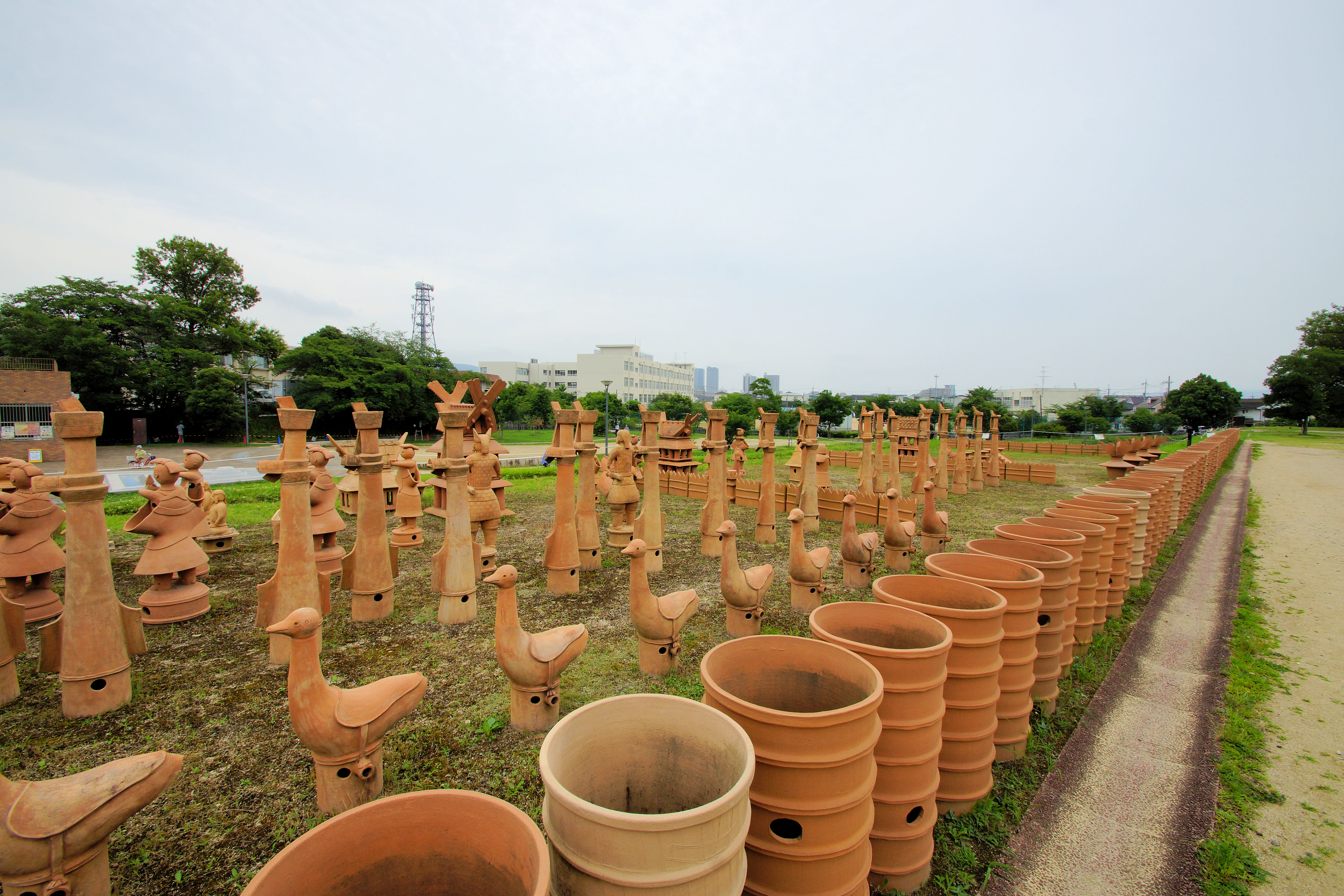 円筒埴輪や朝顔形埴輪と言われるものは、壷として亡くなった人にささげる食べ物を入れた容器として使われたり、古墳の柵のように並べて一列にして設置したものもあります。