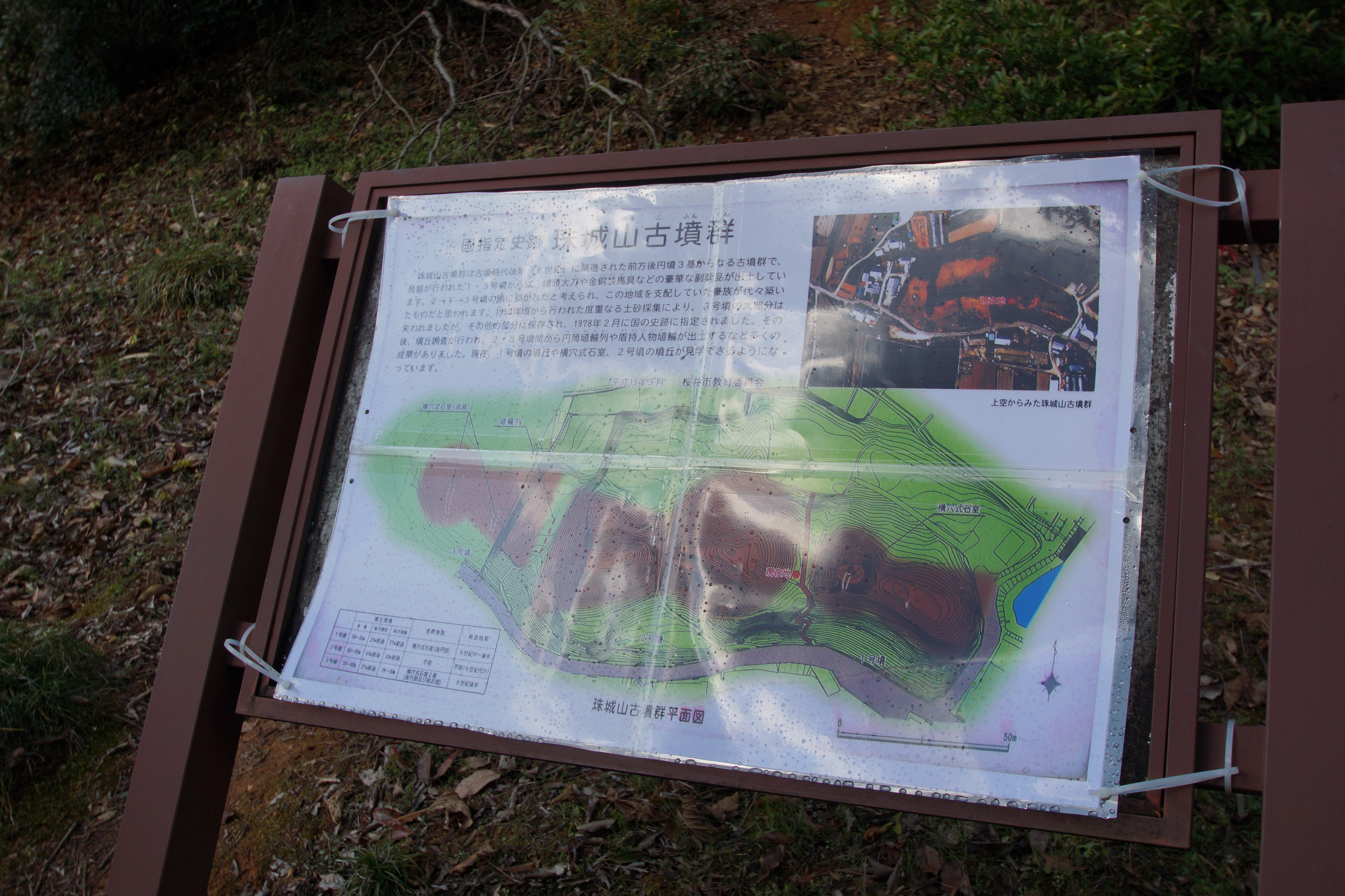第1号古墳は、全長50m、前方部を東に向ける。石室を覗ける古墳です。