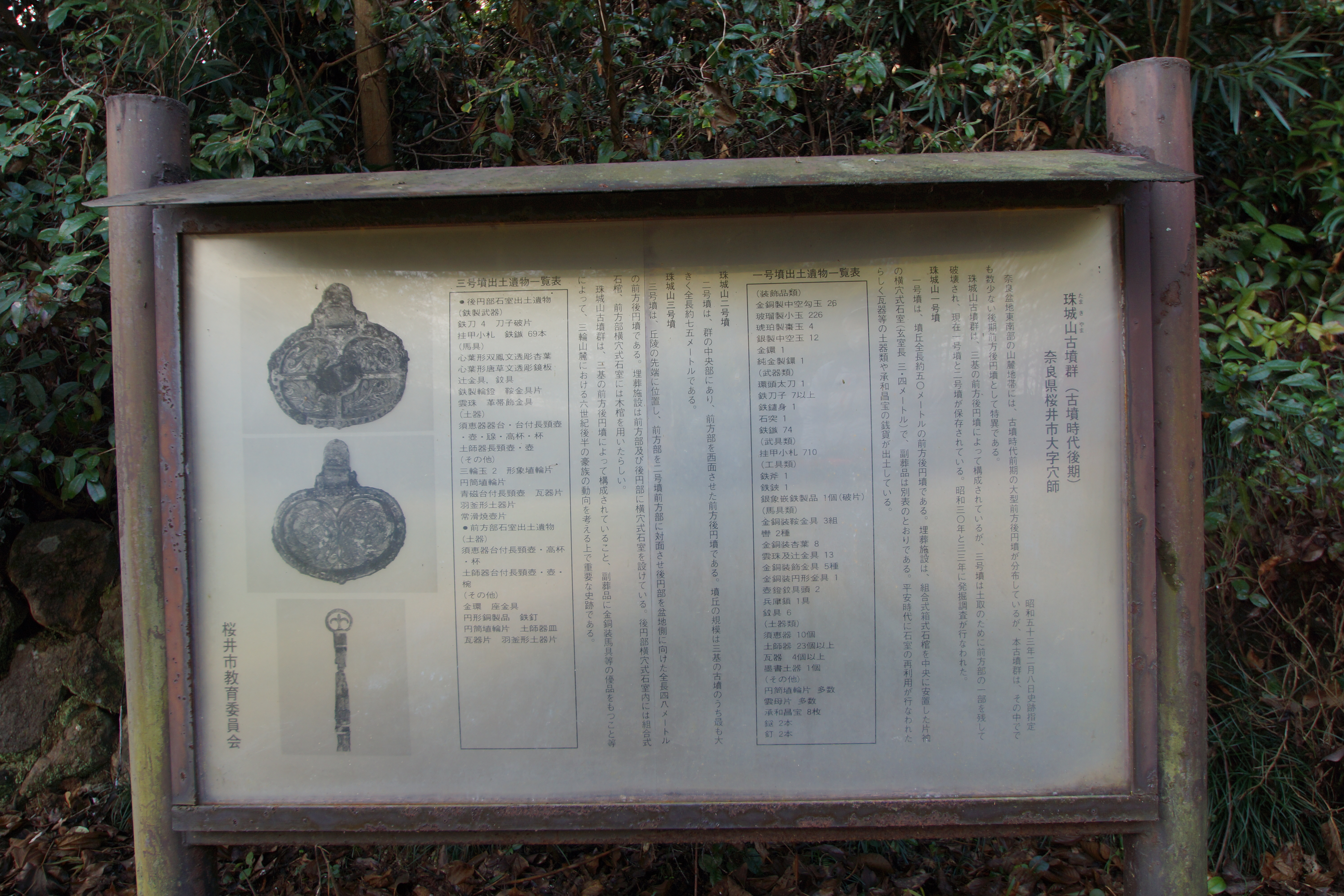 奈良県桜井市穴師にある3基の前方後円墳。築造時期はいずれも古墳時代後期(6世紀)で、おそらく第2→第3→第1号古墳の順に築かれていった古墳群とされている。