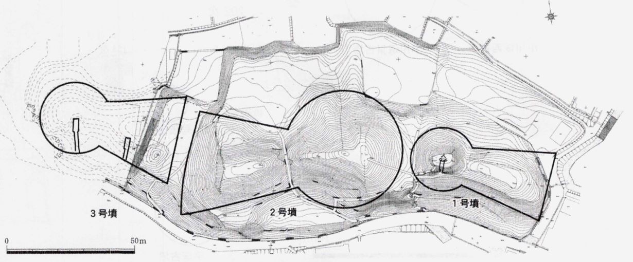 第3号古墳は、前方部は一部を残しほぼ消滅したが、元は全長50m。
