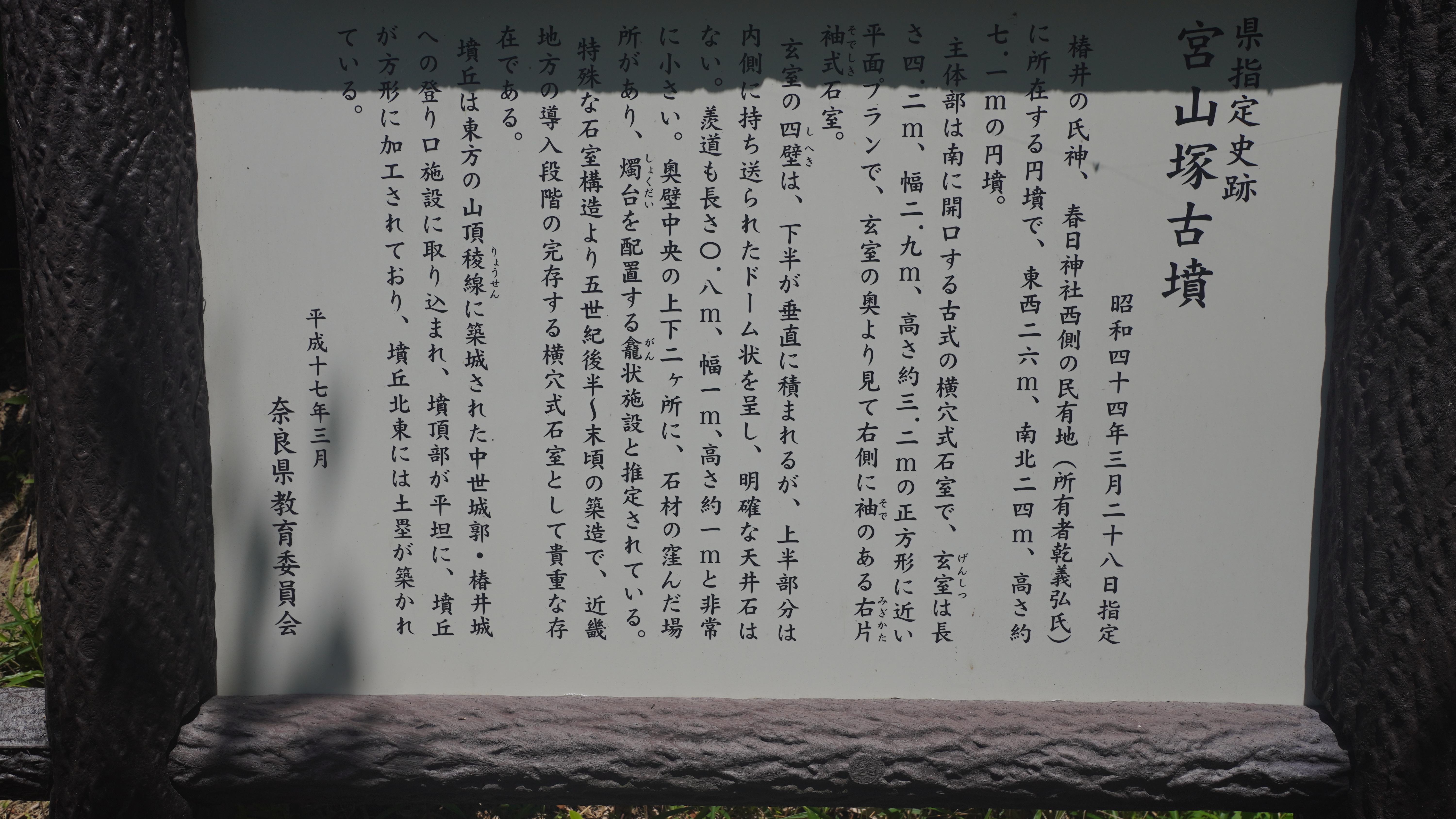 兵庫県南部地震で天井部壁面の一石が落下し、危険なため石室内の見学は出来ないそうです。