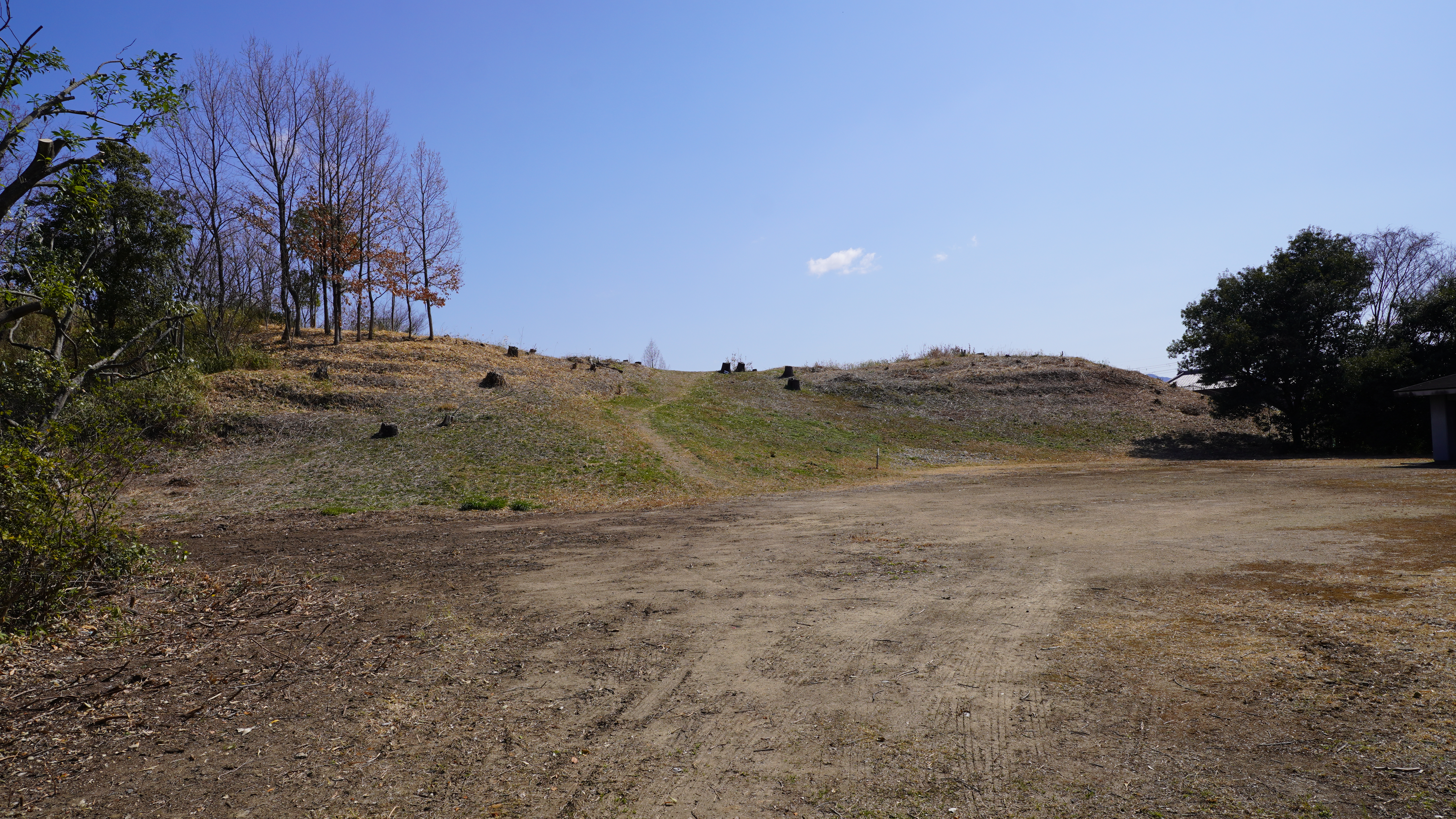 杉山古墳は、5世紀後半に造られた前方後円墳でくびれ部には造り出しもあります。後円部80m、全長154mで周囲に濠が廻っていて全長が200mを超えるそうです。