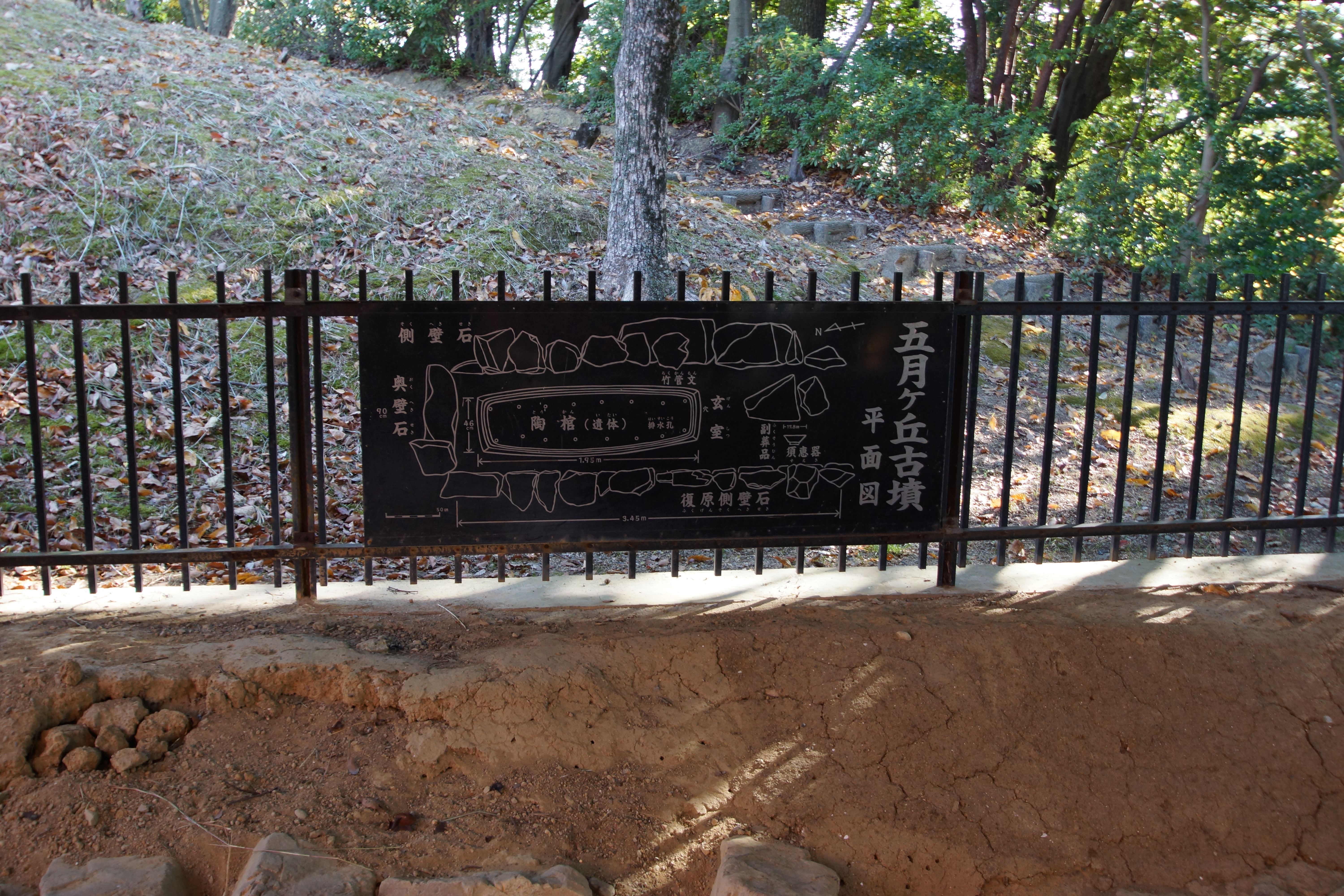 墳形は円形で、直径約8m。主体部の埋葬施設は無袖式の横穴式石室で、南方向に開口する。石室全長は3.5mあり、石室内には長さ2mの陶棺が据えられる。築造時期は古墳時代終末期の7世紀代と推定される。被葬者は明らかでないが、秦氏一族とする説が挙げられている。復元された石室を見ることができます。