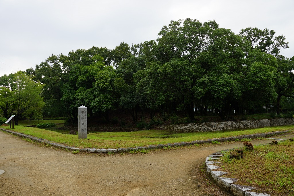 旗塚古墳(はたづかこふん) 百舌鳥夕雲町の大仙公園内にあり墳丘は全長約57.9m、後円部径約41.5m、高さ約3.8m、前方部幅約24.7mの帆立貝形古墳と呼ばれる、前方部が短い前方後円墳です。2段築成で前方部を西に向け盾形の濠がめぐっています。 主体部の構造や副葬品の内容や性格などはわかっていませんが、葺石と埴輪があり円筒埴輪・朝顔形埴輪のほかに、盾・蓋(きぬがさ)などの形象埴輪も出土しています。